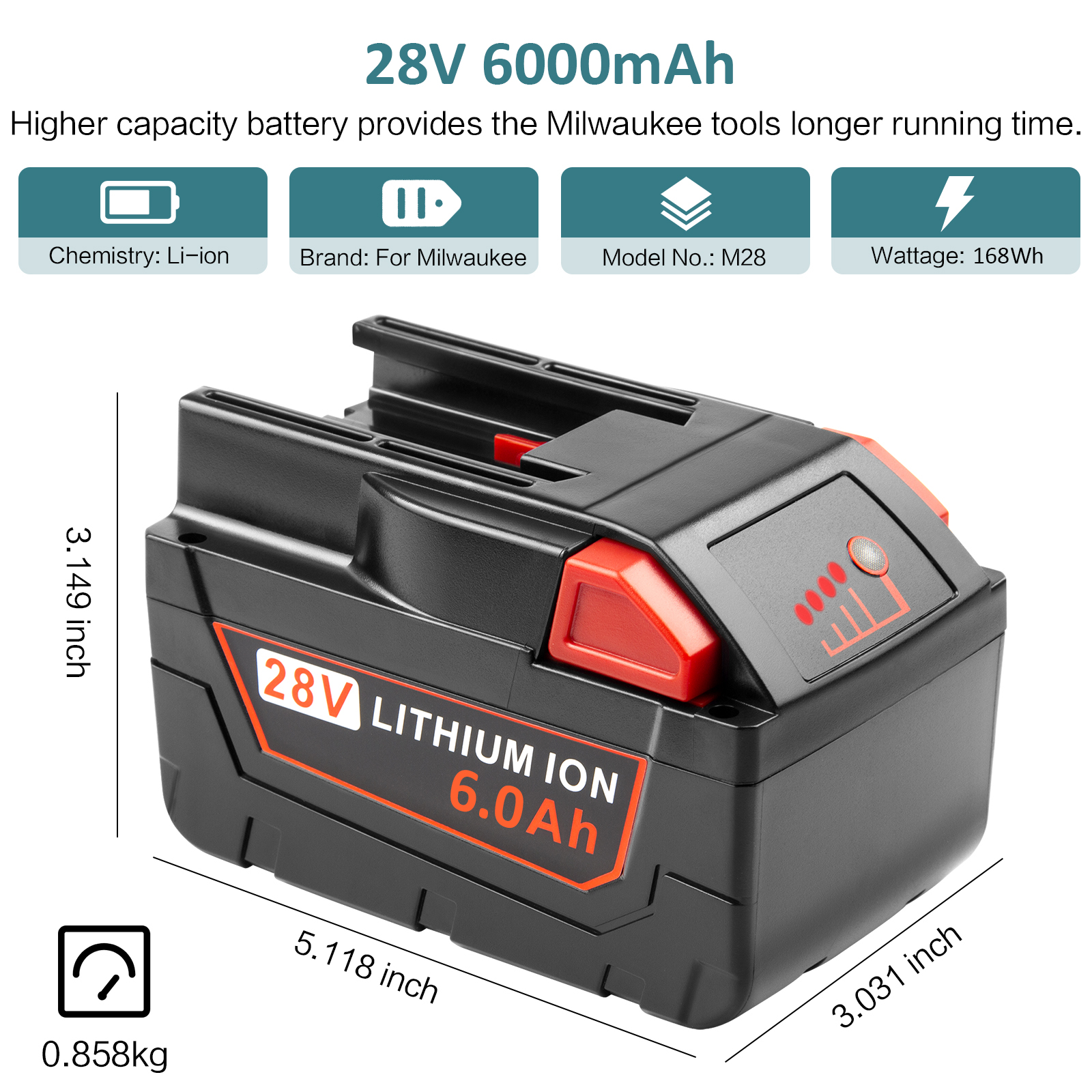 - 【COMPATIBILITY】Replacement battery for Milwaukee 48-11-2830, M-28, M28B, M28BX, M28 B, M28 BX.