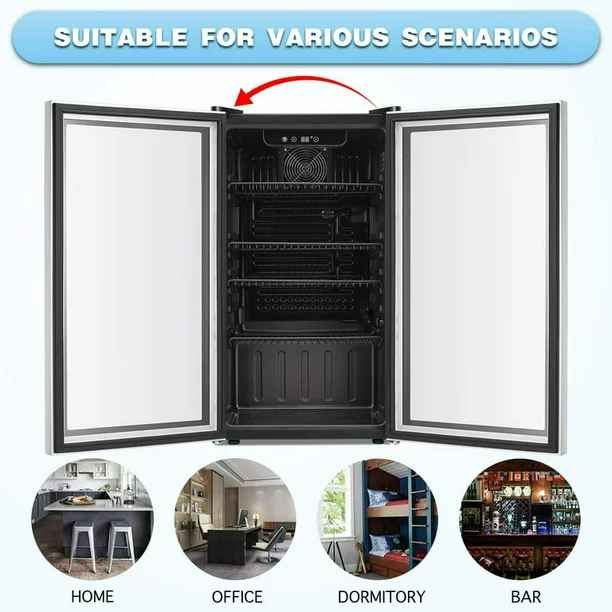 - 🍷COMPACT BEVERAGE COOLER :17.52 x 18.70 x 31.50 inch mini refrigerator can keep a variety of canned drinks or wine chilled without taking up too much space at your home, dorm, bar or office. It can conveniently hold 120 standard-sized drinks cans to impress your guests during parties,and this high-quality Beverage Refrigerator will surely fit and add an elegant accent to any home decor.