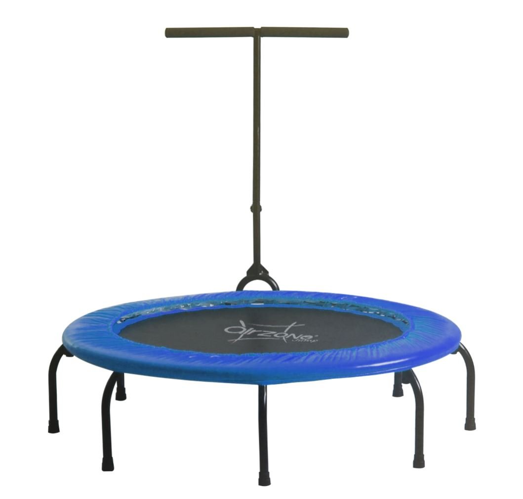 This Airzone 38″ fitness bungee trampoline / exercise rebounder is a great option for anyone looking to get or stay in shape. The steel construction and heavy duty, anti slip polypropylene jump mat were designed for high intensity workouts. The T bar handles will help with your balance. 32 Bright color bungee cords will make your workout noise free. Hop on to help improve your heath!