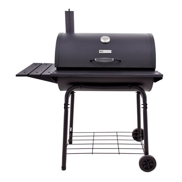 Charcoal grillers will love the American Gourmet by Char-Broil charcoal barrel grill. With 568 square inches of primary cooking space, you can grill for an army. It features adjustable fire grates and dampers, as well as a removable ash pan. The grates are cast iron, which are great for searing. It also features a 272 square inch swing-a-way warming rack, temperature gauge and a handy side shelf. Move the grill easily with rolling casters.