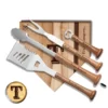 - Includes: ”Slider” Spatula, ”Forkball” Fork, ”Pickoff” Bottle Opener, ”Splitfinger” Tongs, and 17” x 17” ”Home Plate” Cutting Board