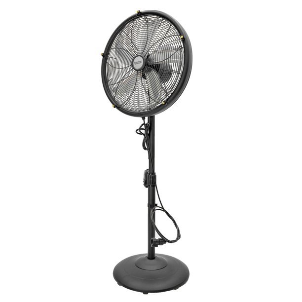 Durable metal construction extends life of the fan and helps withstand the outdoor elements -Offers three speed settings and oscillation to keep air moving with a maximum CFM rating of 2450 and minimum CFM rating of 1951Optional oscillation for widespread cooling and mistingFive-nozzle misting hubsEasy assembly, no tools required6 ft long, three prong, GFCI grounded cord Product dimensions: 20.28″ x16.54″ x40.16″-55.12″Product weight: 22.20 lbs Package dimensions: 22.64″ x14.37″ x22.83″; 29.54 lbs120V, 60HzOne-Year limited warrantyUL listed for outdoor use