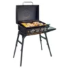 The Blackstone 22″ Table Top Griddle station is compact and convenient. At 339 sq. inches of griddle cooking surface, this unit gives you two independent cooking zones, with two independent knobs with built-in igniters. The two “H” style burners provide even heat distribution for optimal cooking across the whole griddle. Lightweight Design; Runs off of a one pound bottle;Rear grease management. Black/Silver.