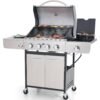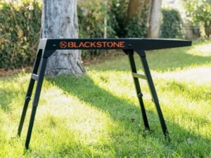 The Blackstone Griddle Accessory Table is perfectly designed to fit Blackstone 22″ and 17″ table-top griddles. The extra-large frame gives you more room to place a 1 lb. tank and still have plenty of prep space on the side shelf. With independently adjustable height for each leg, this table is easy to use on any terrain. The table is completely portable with foldable legs and a removable shelf. Made from durable metals, this stand is ideal for any outdoor adventure.