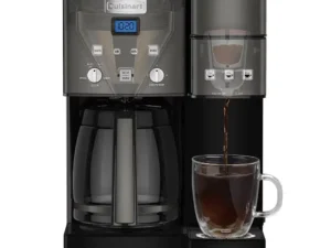 Easy-view water window, Includes Cuisinart?s HomeBarista? Reusable Filter Cup which lets you use your own coffee, 3 serving sizes: 6, 8, 10 oz., Removable drip tray for travel mugs, 12 cup glass carafe with stainless steel handle, Removable 40oz reservoir, BPA free, Brew Pause? feature ? pour a cup before brew cycle ends, Gold-tone coffee filter lets only pure coffee flavor flow through, Fully automatic ? 24 hour brew start, self-clean, adjustable auto-off, ready alert, Single-Serve:, Brew Strength Control ? select BOLD for stronger coffee flavor, 3-Year Warranty, K-Cup pod compatible, Adjustable carafe temperature, Carafe Brewer:, Charcoal water filter, Energy Save mode, Reusable FilterBrand