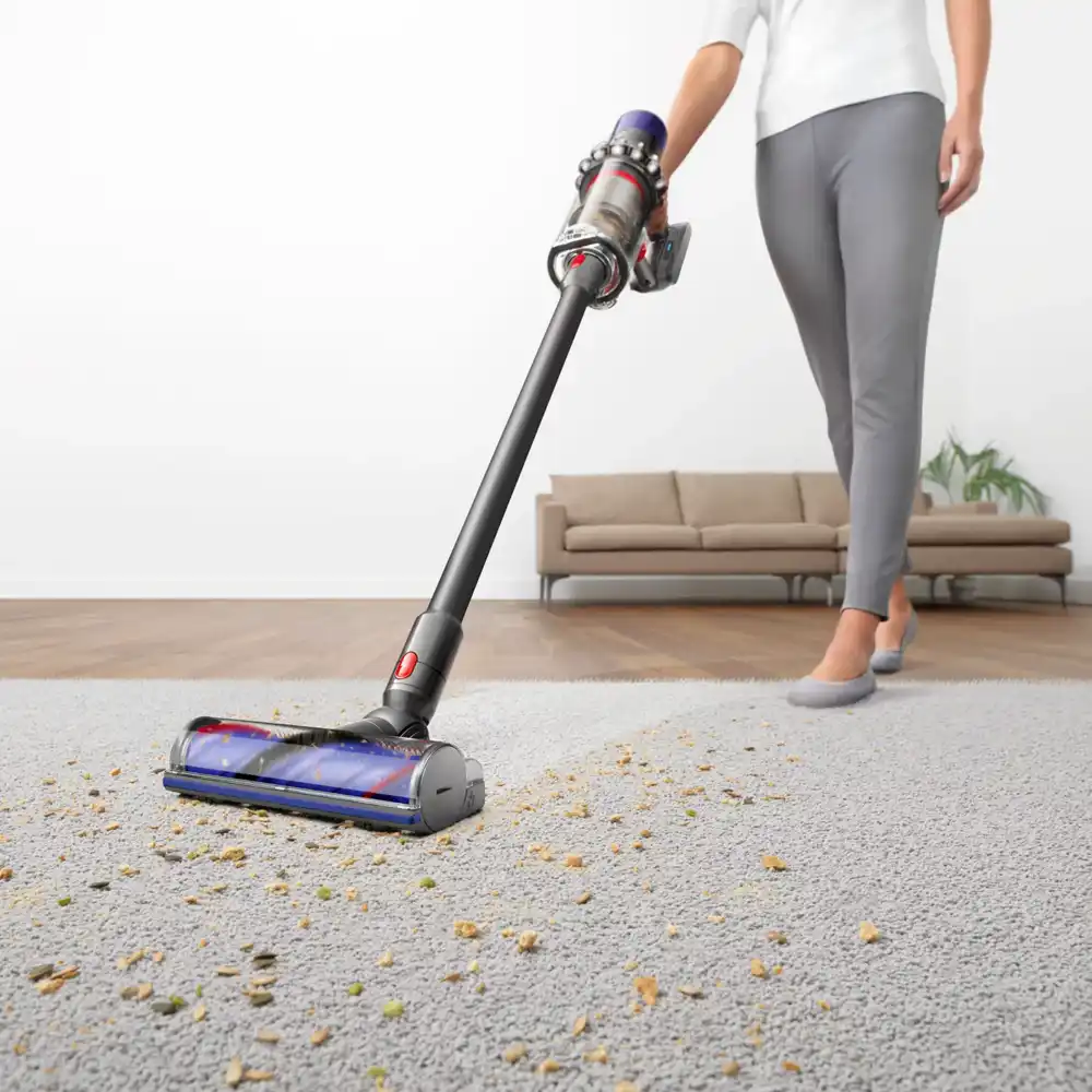 The Dyson Cyclone V10 cordless vacuum cleaner is engineered with the power, versatility and run time to deep clean homes with pets. Dyson’s de-tangling Motorbar™ cleaner head deep cleans carpets and hard floors with hair removal vanes that clear long hair and pet hair from the brush bar. The innovative Hair screw tool with a conical brush bar is perfect for cleaning upholstery and pet beds. The Dyson Cyclone V10 has advanced, whole-machine filtration that captures pet allergens and fine dust, expelling cleaner air. Its versatile cordless format transforms into a handheld vacuum with one click so you can clean up high, down low and everywhere in-between with 3 cleaning modes for the right power where you need it. Comes with a 2-year warranty and lifetime Dyson support.
