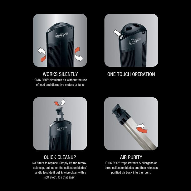 One significant benefit of the Ionic Pro line is that it doesn’t require you to replace the filter; instead, you lift the removable cap, pull out the collection blades and wipe them clean with a soft cloth. The Ionic Pro makes it easy to achieve a healthier home environment.