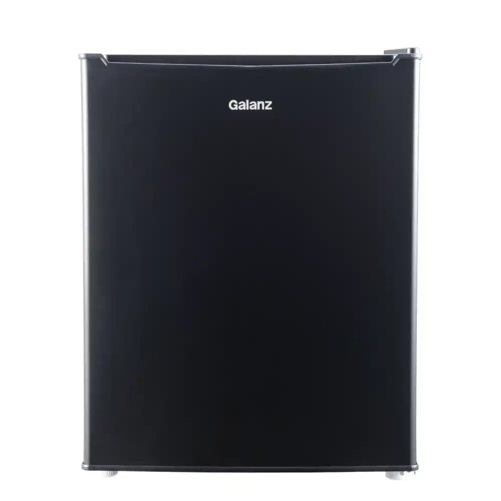 Enjoy the convenience of having your favorite chilled food or drinks whenever you want with the Galanz 2.7 Cu ft Single Door Mini Fridge in Black. This is an ideal size for the dorm room, exercise room, office, garage, game room or any other living space. This Galanz refrigerator features a half-width chiller compartment, and it has excellent organizational features such as 2 coated wire slide-out shelves, 2 leveling front legs and storage for 2-Liter bottles. The convenient reversible door allows the refrigerator to open from either the left or the right side to use where ever you would like to place it. It offers a mechanical adjustable thermostat control for quick and simple temperature adjustments. It consumes less power, is energy efficient and Estar certified. This UL and DOE certified refrigerator is quality built and made to last.