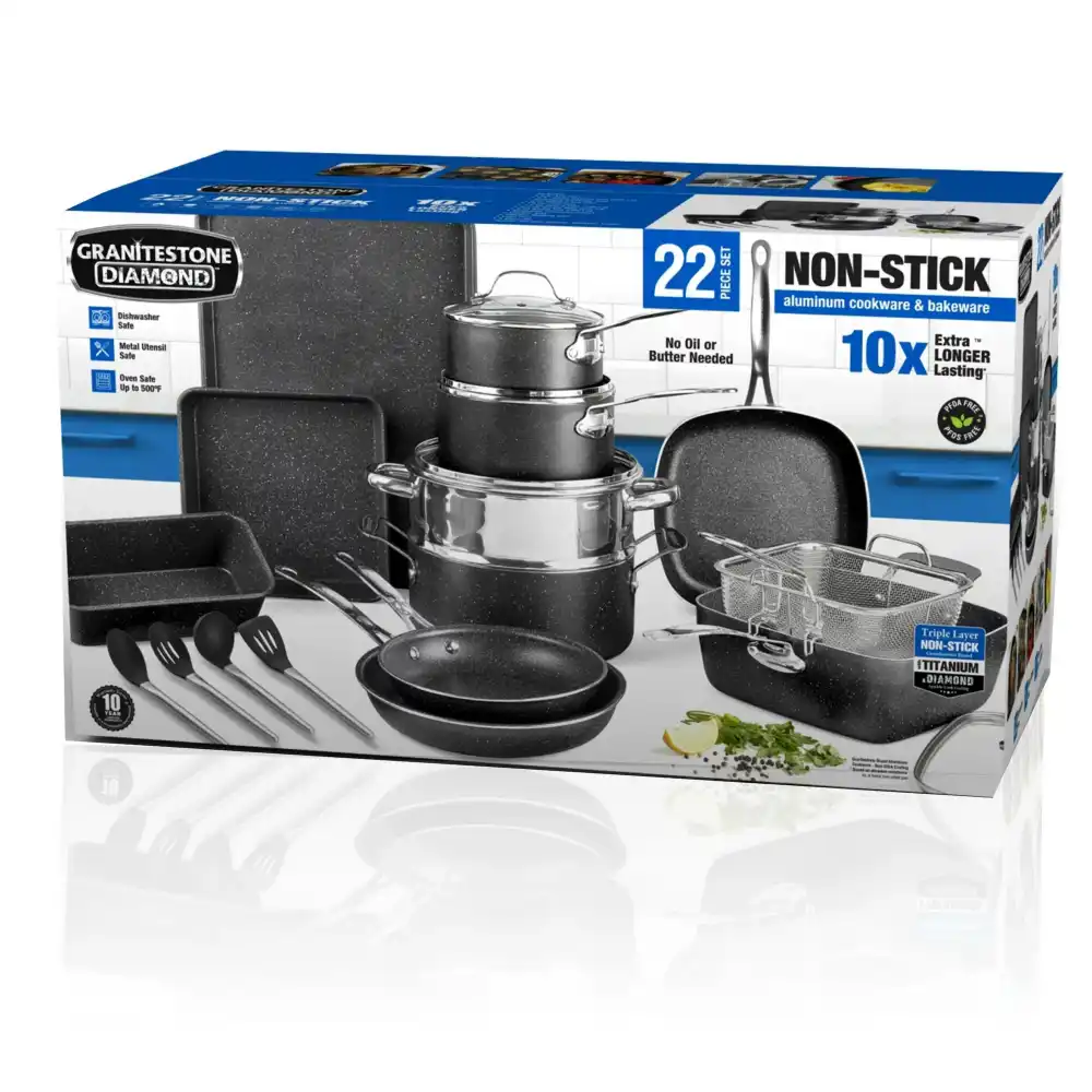 - ULTRA NON-STICK: Granite stone nonstick cooking surface is coated 3x, reinforced with diamonds to deliver the ultimate food release. No oil or butter needed, makes for healthier eating, and provides for hassle free, 1-2-3 cleanup