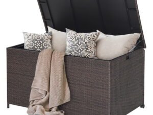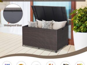 - Selected Materials: The sun-protective and fade-resistant mix brown PE rattan,as well as the rustproof and heavy-duty steel frame make this outdoor storage box durable and stable for outdoor use. And the extra supporting legs ensure extra stability.