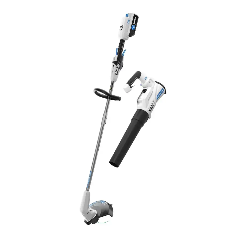 The HART electric 40V String Trimmer/Blower Combo Kit is a great pair to keep your yard looking its best. The battery-powered string trimmer features an auto-feed head that releases 1/4” line every time you press and release the trigger. So no bumping required! It also has an 10-12” cutting swath. The cordless blower delivers up to 120 mph of wind force blowing at 450 CFM, making it ideal for clearing wet debris off hard surfaces. Both tools are designed to be lightweight for user comfort and have a variable speed trigger for the ultimate in control. They also use a 40V lithium-ion battery that runs up to 45 minutes—more than enough time for half an acre yard. All part of the 40V System where you get ALL POWER, NO GAS™.