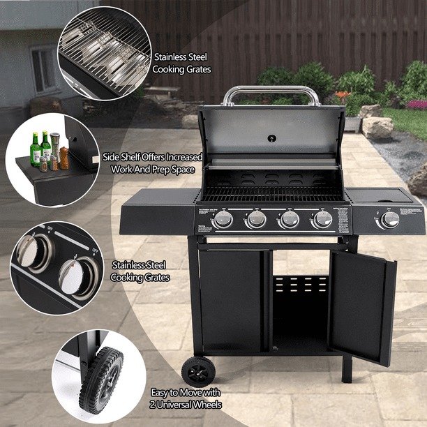 There is just something amazing about grilling food over a barbecue. Haverchair 4-Burner Gas Grill with Side Burner,a stylish cooking machine that can generate 50,000 BTU evenly and offering more preparation space. With 474 sq. in. of total cooking space the BBQ offers enough space to cook for small gatherings or large parties. You’ll definitely be in love with this and it does can be a godsend for people who love grilling at home with friends and families!