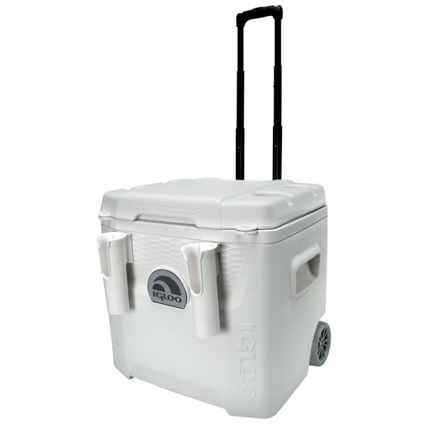 Fine-tuned for your next fishing trip, the Igloo 52-Quart Marine 5-Day wheeled cooler with cup holders combines grippy, non-marking wheels with a full suite of marine-grade features. From UV protection to rust-proof stainless-steel hardware, this cooler will keep drinks and snacks (or the catch of the day) cold, fresh and there when you need it. Designed to stay where you are no matter the rough or wet surface. White indoor and outdoor 52-Quart wheeled cooler.