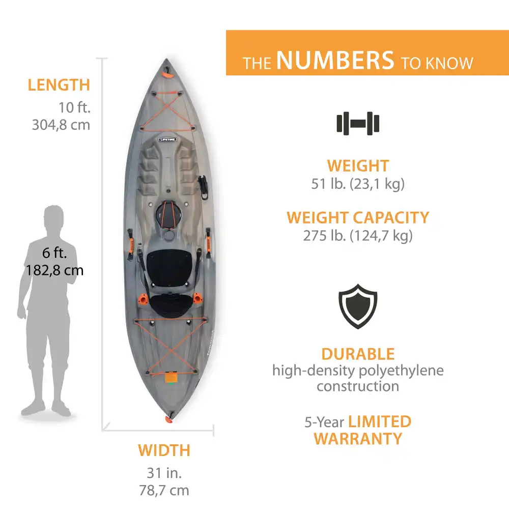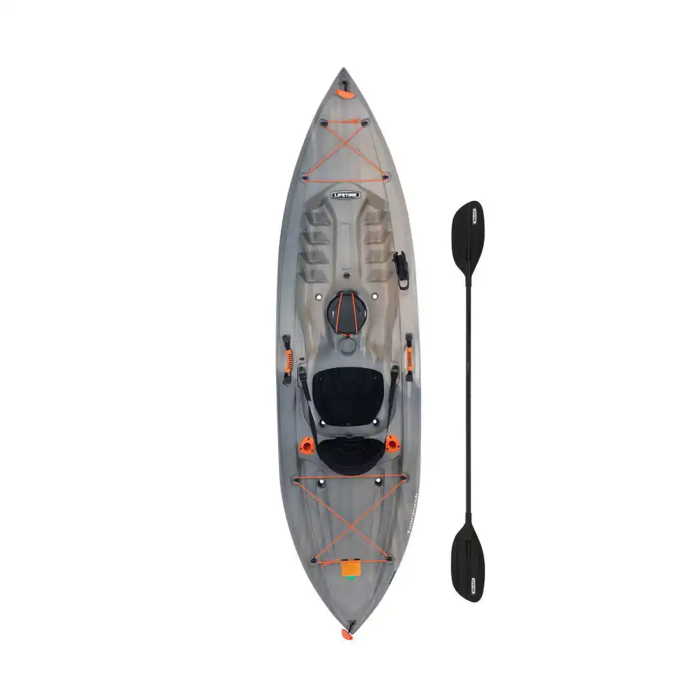 Take some time to relax on the water with family and friends. The Lifetime tamarack angler is a sit-on-top fishing kayak that has a comfortable padded seat and backrest for long fishing adventures. Designed for extreme safety and stability, the tamarack angler has a stable flat bottom with deep tracking channels and stability chine rails. The kayak features durable construction that is UV-protected, and impact resistant. The lightweight design and front and rear carry handles make it easy to transport to and from the waterfront. With fishing rod holders, shock cord straps, multiple footrest positions, and a storage hatch, this kayak has plenty of extras to enhance your paddling and fishing experience.