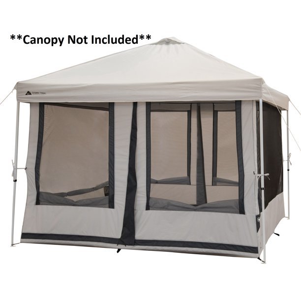 The Ozark Trail 7-Person 2-in-1 Screenhouse ConnecTent is a versatile accessory for your 10 ft. x 10 ft. Straight-Leg Canopy. Simply clip it into your canopy (not included) to create a screenhouse or tent. It does not stand alone without a canopy. Two doors make entering and exiting easy for everyone. Six oversized windows provide plenty of ventilation and offer 360 degrees of visibility. A sewn-in floor keeps critters out while little ones play without getting itchy from the grass. The windows zip up for privacy and convert the screen house into a tent that is ideal for sleeping. This tent comfortably sleeps 7 people or fits 2 queen size air beds, making it more than just a screenhouse, but also an ideal camping accessory. An E-Port, media pocket, 4 lantern loops, and storage pockets ensure you enjoy all the comforts of home. The Ozark Trail 7-Person 2-in-1 Screenhouse ConnecTent is the go-to canopy accessory for camping and backyard fun. *10×10 Straight-Leg Canopy Sold Separately*