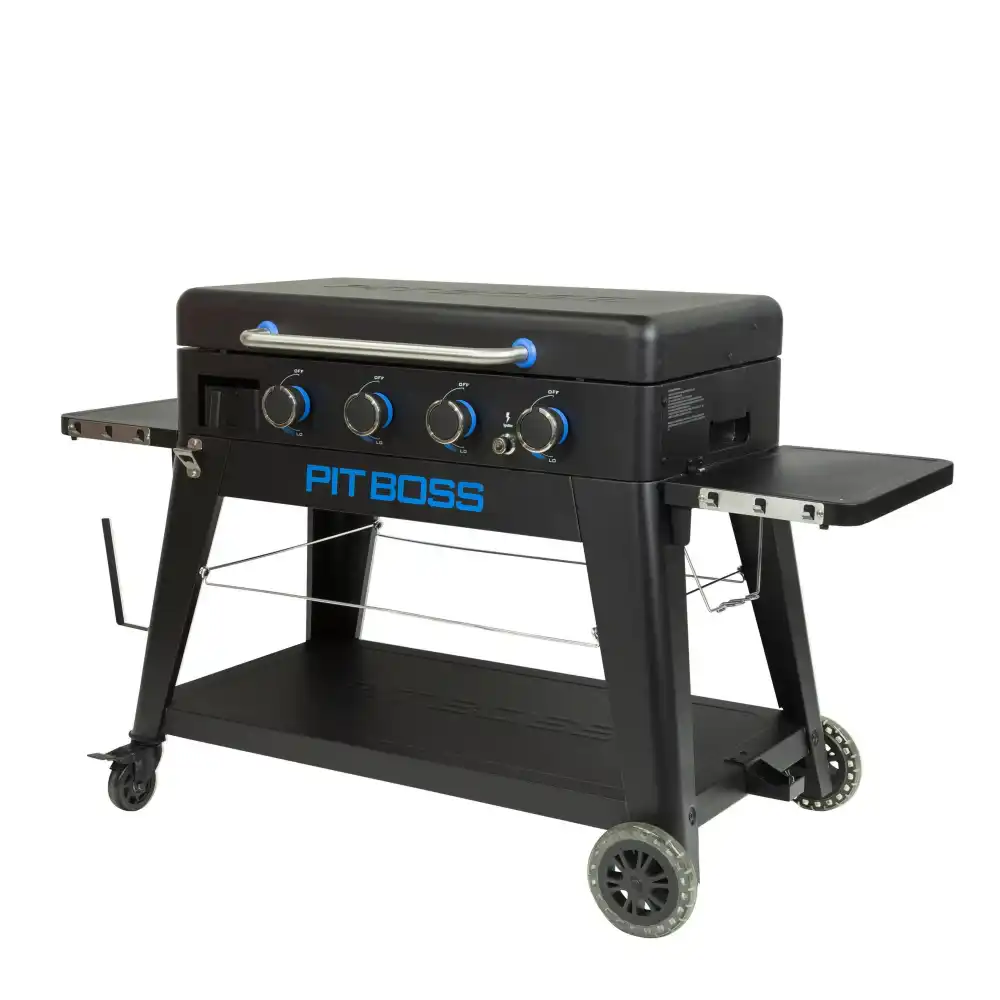 Innovation meets versatility with the Ultimate Griddle by Pit Boss® Grills. The Pit Boss® Ultimate 4-Burner Non-Stick Lift-Off Griddle perfectly blends power, portability and precision to create a one-of-a-kind grilling machine that delivers a Bigger. Hotter. Heavier. outdoor cooking experience unlike anything on the market today. Fitted with our all-new proprietary non-stick armored ceramic cooking surface, the Ultimate Griddle delivers an unrivaled user-friendly cooking experience. The first of its kind, this exclusive surface is ready to use straight out of the box and is a dream to clean, needing just a gentle wipe after use. As an added bonus, the ceramic coating also protects the griddle from scratches and rust, keeping your unit looking better for longer. Completely portable, the Ultimate Griddle utilizes our easy lift-off technology for simple transport to any campsite or tailgating event. These units are aesthetically qualified to be the centerpiece of your backyard cooking arrangement, while also being flexible enough to hit the road and handle your cooking needs wherever you go. Featuring a robust 4-burner heating platform, the Ultimate Griddle is the perfect fit for whatever your needs may be.