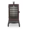 - Includes an analog meat probe, porcelain-coated water and wood pan with external access, and door thermometer