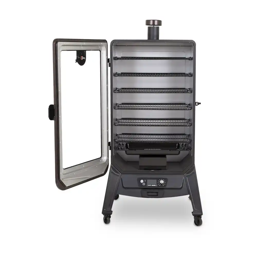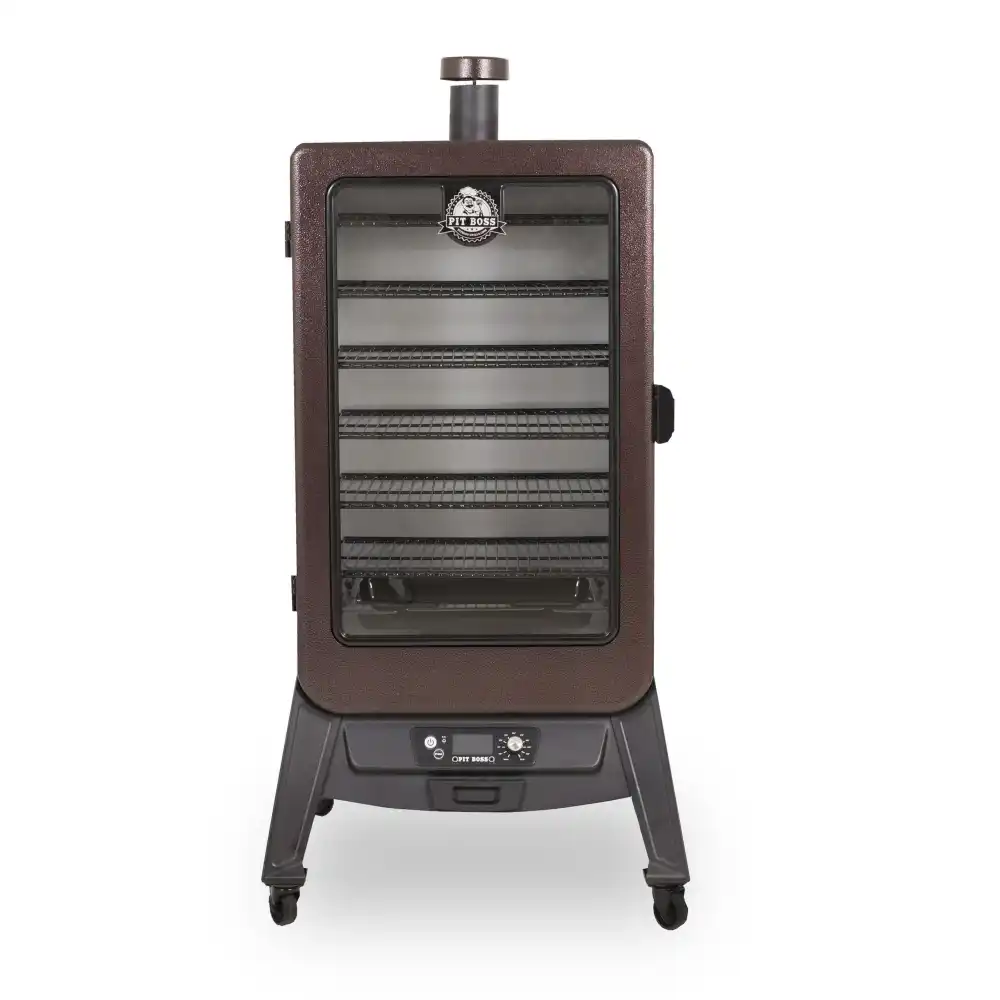 Innovation meets the outdoors with Pit Boss’ all new 7 Series Vertical Pellet Smoker. Never before has smoking been this versatile. With the PB 7 Series Pellet Smoker there is no need to fret about cooking lengths – its 55 pound plus hopper allows you to cook for up to 24 hours! Its sleek design is not only unique, it is also functional. The multiple position racking system ensures you’ll have enough room to smoke anything your heart (or stomach) desires. Experience how Pit Boss is redefining the smoker industry in your own backyard!