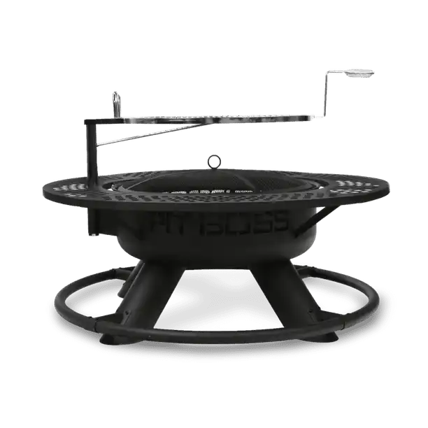 Bring the Bigger. Hotter. Heavier.® bonfire to your backyard with the Cowboy Fire Pit by Pit Boss® Grills. Perfect for both entertaining and barbecuing, this 2-in-1 pit is an excellent addition for your next outdoor gathering. The Cowboy Fire Pit’s innovative design features a swivel stainless-steel grate for authentic wood-fired cooking that you’d expect from a Pit Boss product. You can adjust the grate height to cook with more or less heat or remove it completely to enjoy the flames. The large-capacity bowl holds enough wood to burn for hours, while the wide-base design and heavy-duty steel construction offer long-lasting outdoor use. These units also feature a wraparound mesh shelf that act as a convenient side table for setting down food or drinks. Plus, with safety features like a mesh spark screen and effortless ash cleanout, the Pit Boss Cowboy Fire Pit the perfect fire pit for backyards with families or pets.