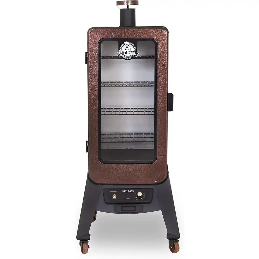 Pit Boss has done it again! we have completely changed the vertical smoking game! our new vertical pellet smoker line is like nothing seen before. We have integrated the top loading pellet Hopper to the rear of the smoker, increased capacity and have gone completely digital. Our 3.5 cu’ capacity pellet smoker includes five cooking racks and boasts a 901 sq in cooking area. The fully programmable digital controller gives you Complete control of the 150 450 temp range. Double-walled construction with blanket insulation protects internal temperatures on the coldest nights. 40+ lb Hopper allows you to smoke low and slow for over 24 hours.