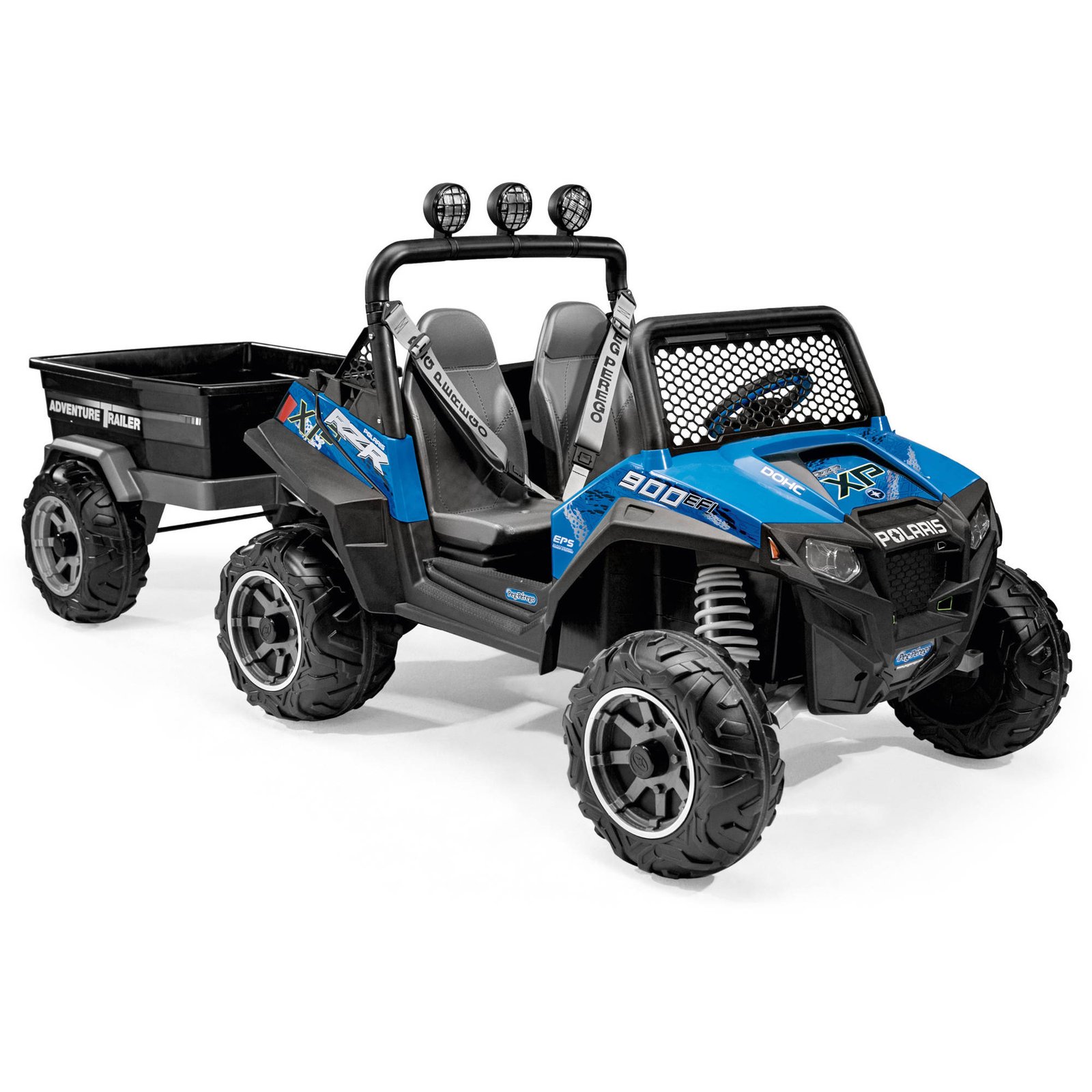 Build up the playtime fun with the Adventure Trailer! Compatible with various 12 volt and 24 volt Polaris and Peg Perego models, the Adventure Trailer includes a locking hitch pin for easy attachment. Kids will love loading up and dropping off their treasures, and with the ability to hold up to 66 pounds, there will be plenty to haul. The rugged and durable wheels of the Adventure Trailer make it the right attachment for going over any terrain.