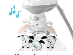 Your baby will love the snuggly soothing of the Fisher-Price Dots & Spots Puppy Cradle ‘n Swing. This dual-motion baby swing can rock side-to-side or head-to-toe, with adjustable recline positions and speeds so you can find the perfect calming combination for baby. The extra-cushioned seat pad, variety of soothing songs and sounds, and an overhead mobile with three dancing doggies and a dome mirror are sure to keep baby comfy and entertained. Max weight: 25 lb/11,3 kg Use as a swing from birth until child attempts to climb out of product
