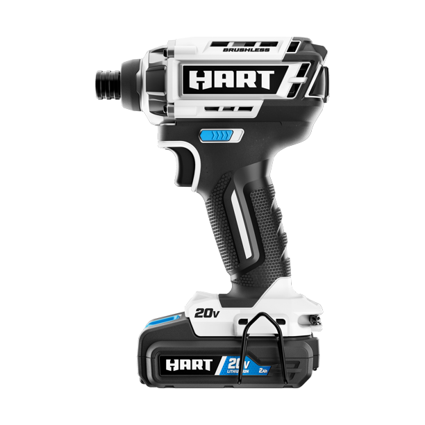 HART’s 20V Brushless ¼” Impact Driver boasts up to 3,000 RPM and up to 2,200 in-lbs. of torque to handle most every driving job you’ll ever come across. Where does this power come from? In 3 words: Brushless motor technology. Using the same 20V HART battery, the Brushless motor delivers up to 30% more power* and is also up to 20% faster. This tool features a variable speed trigger with up to 3,800 IPM for powerful and controlled drilling and driving—and an onboard LED light for illumination. Apart from that, it also has a ¼” hex chuck for fast and easy bit changes. The kit also includes: HART 20V 2.0Ah Lithium-ion battery, a fast charger, a 2″ Phillips driving bit, a belt clip, a soft storage bag and operator’s manuals. As a DIYer, you’ll find there isn’t a standard head fastener (slotted, Phillips, star or square) this driver won’t drive.