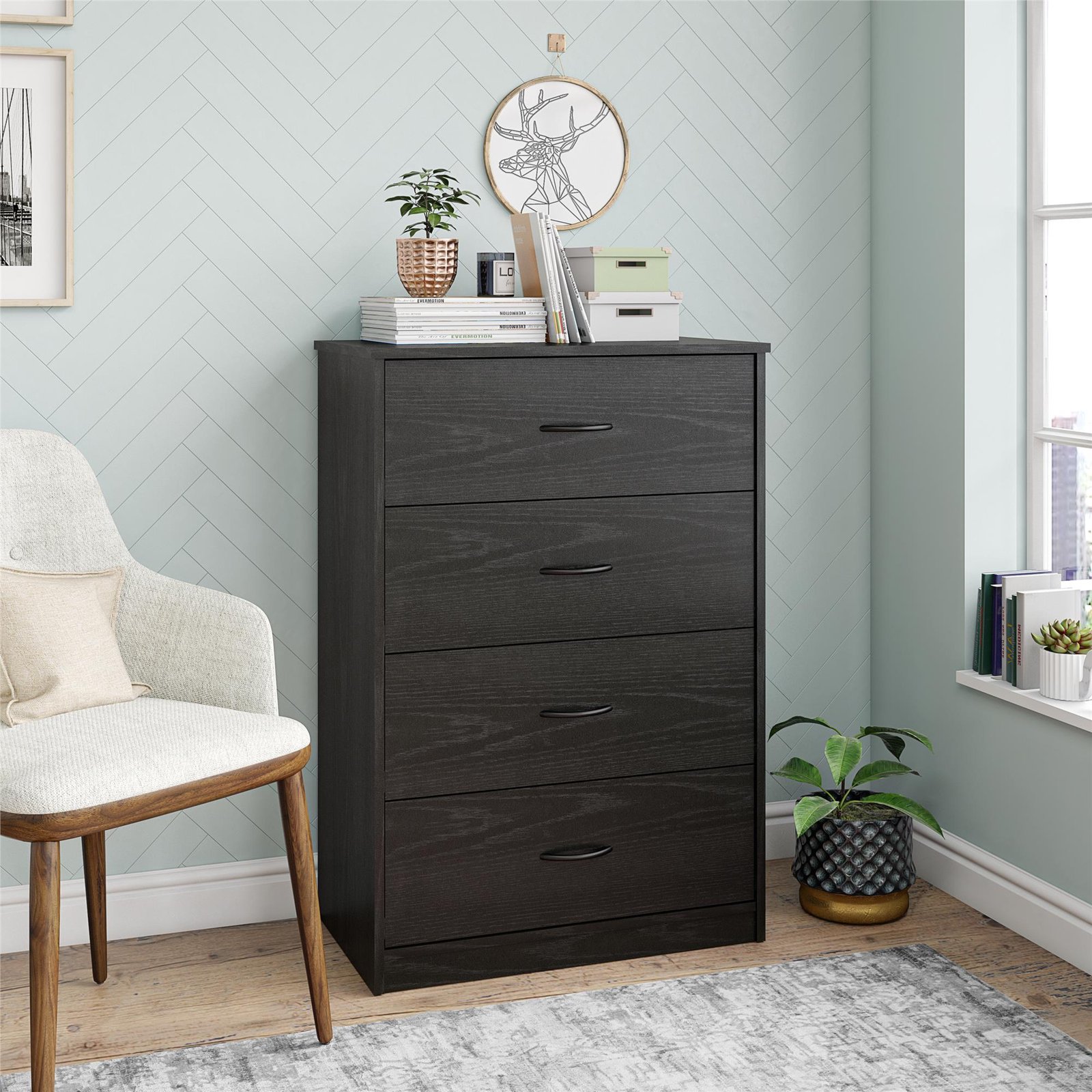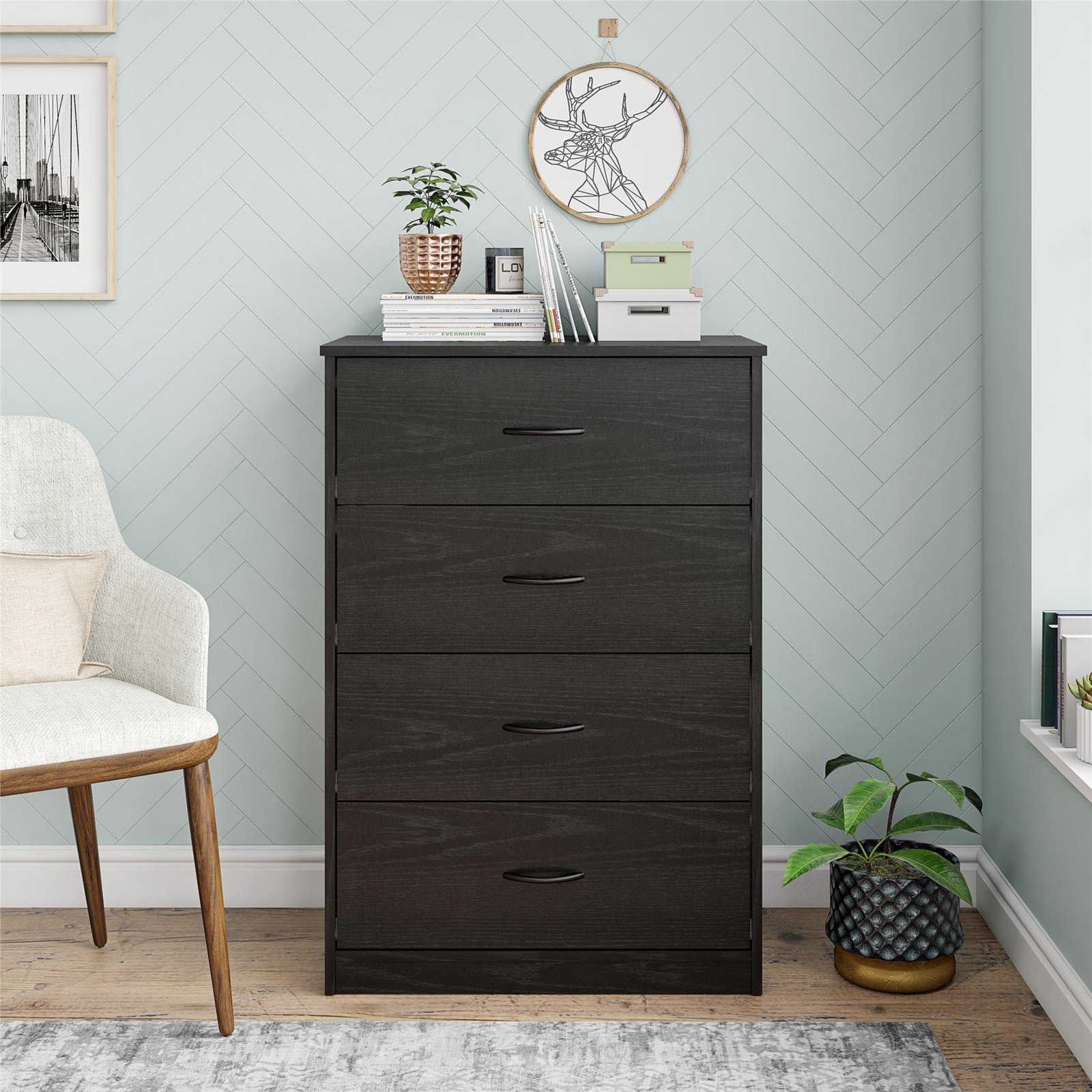 Mainstays Classic 4 Drawer Dresser, Black Oak Finish