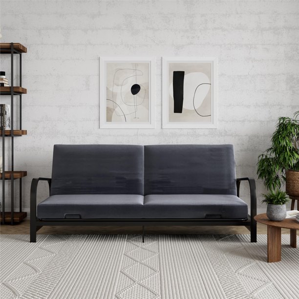 Mainstays Metal Arm Futon, Black Metal Frame with Gray Mattress
