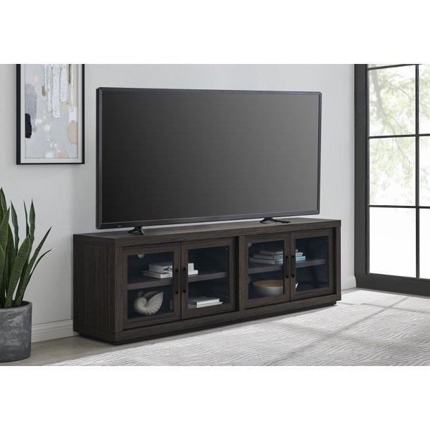 Better Homes & Gardens Steele Media TV Console for TVs up to 80″, Espresso The modern look and clean lines make this TV stand fit well with any decor. From gaming consoles and accessories, to components for your television, speakers, dvd’s and blu-rays, even board games and books, this versatile furniture is sure to keep you room clutter free. Accommodates most flat panel TVs up to 80″ and 135 lbs Easy assembly