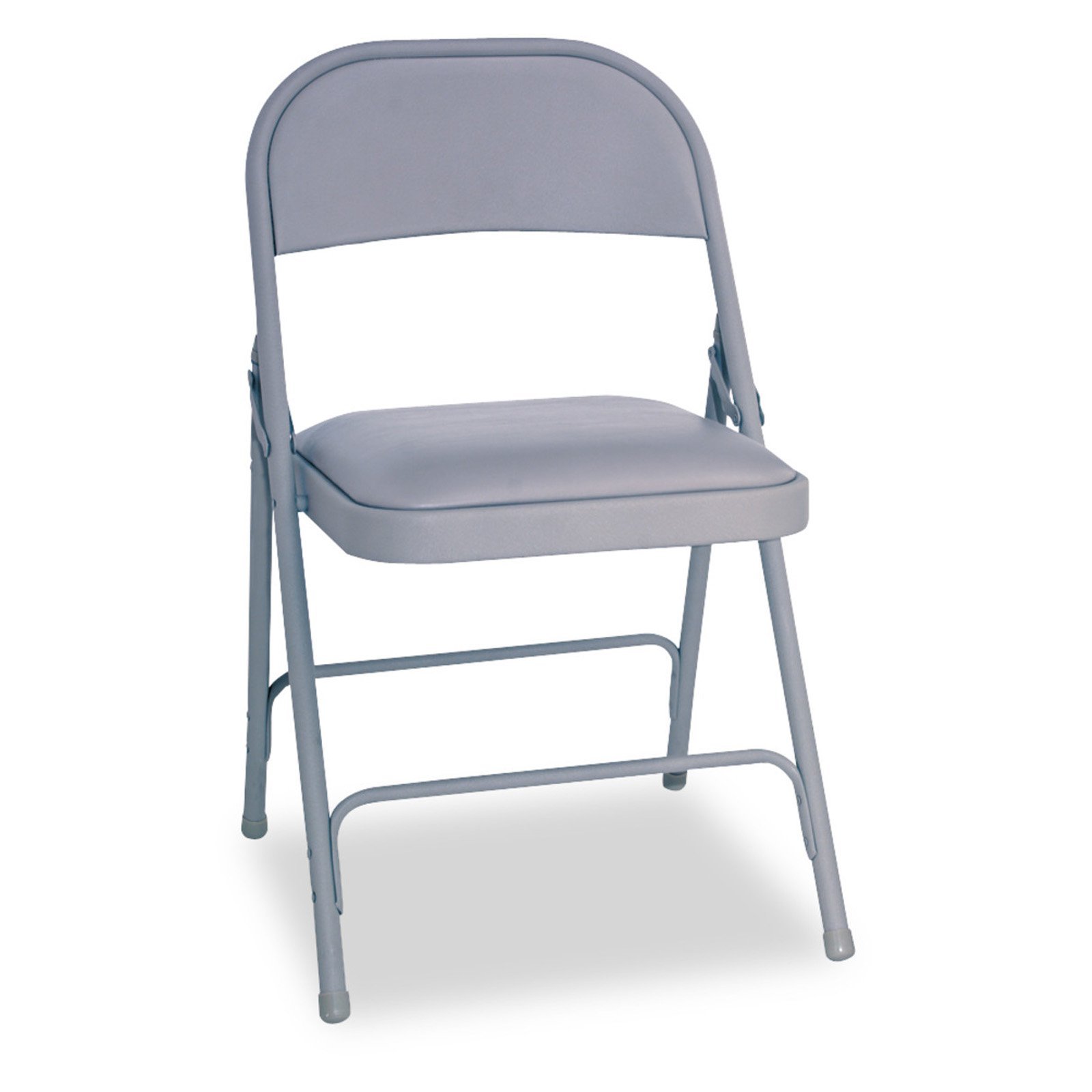 Traditional armless steel folding chairs are an office necessity. Sturdy tubular steel frame with double braced construction. Textured powder-coated finish resists smudges and fingerprints. Rubber caps on feet help protect floor. Fold and stack neatly for storage. Traditional armless steel folding chairs for large groups.