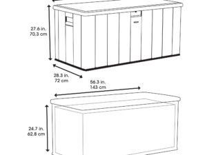Exterior Dimensions: 4 ft. 11.3 in. W x 2 ft. 4.3 in. L x 2 ft. 3.6 in. H (150,8 cm x 72 cm x 70,3 cm)