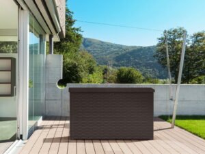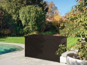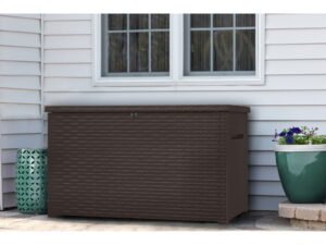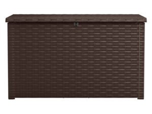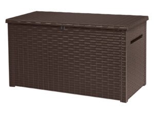 Keter Java Extra Large Rattan Style 230 Gallon Plastic, Resin and Wicker Deck Box, Espresso Brown
