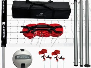 MD Sports Official Size Premium Volleyball Set with Durable Carry Bag and Quick Setup Webbing Boundary Line:
