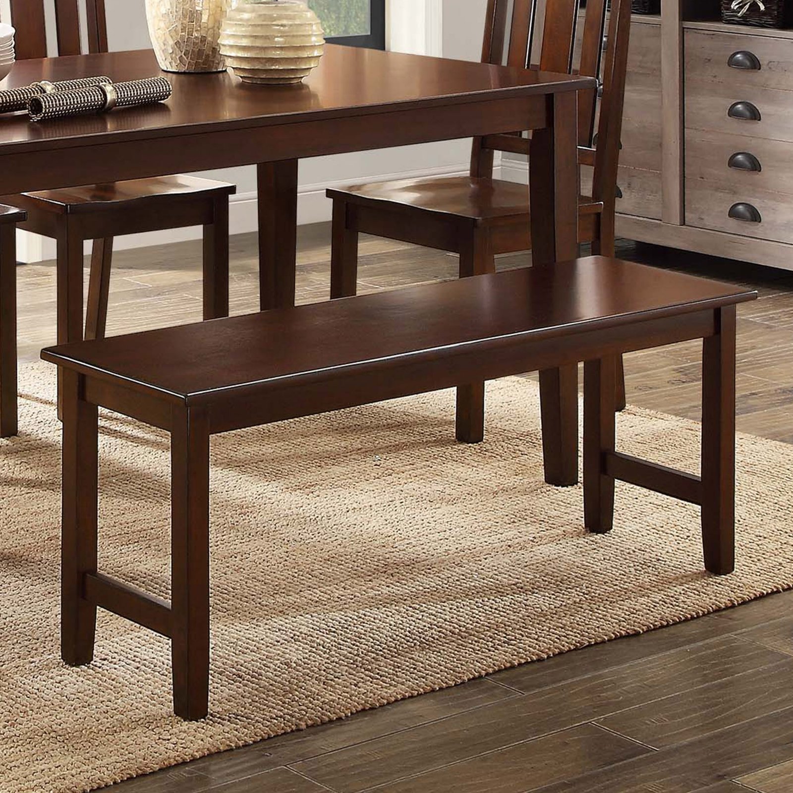 The stylish Better Homes & Gardens Bankston Dining Bench adds sleek charm to your space. The rich mocha finish complements most any interior decor or furnishing styles, from modern and elegant to rustic and vintage and all things in between. This bench is designed to comfortably fit two people and is perfect for your dining room, kitchen, breakfast nook or for additional seating in your living room, study, home office or any other area in your home. It can also be used as a decorative piece in an entryway, hallway or other space and is constructed for long-term use and durability so you can enjoy it for years to come. Assembly is easy, so you can use the bench almost immediately. It coordinates with the dining table and other pieces in the Better Homes & Gardens Bankston Collection and can add stylish, comfy seating options to most any room in the house.