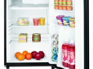The RCA 4.5 cu. ft. Black Single door Compact Refrigerator is roomy enough for your groceries and beverages but small enough to fit almost anywhere. Keep groceries organized with removable food shelves, a food rack, bottle rack, dairy rack and even an ice cube chamber freezer compartment with an ice cube tray and drip tray. The can dispenser storage bins make it easy to access soda and juice cans. An invisible door handle and adjustable legs add to the unique design and helps you keep your unit level on uneven surfaces. The door is reversible, meaning you can adjust it to open from either the right or left. That allows you to place it anywhere, even in the tightest corners of your home. You can also adjust the temperature depending on what type of food is inside, helping you consume less energy and save on your electric bill. This unit can hold all of your groceries but allows you to save space whether this is going in a dorm room or in the den.