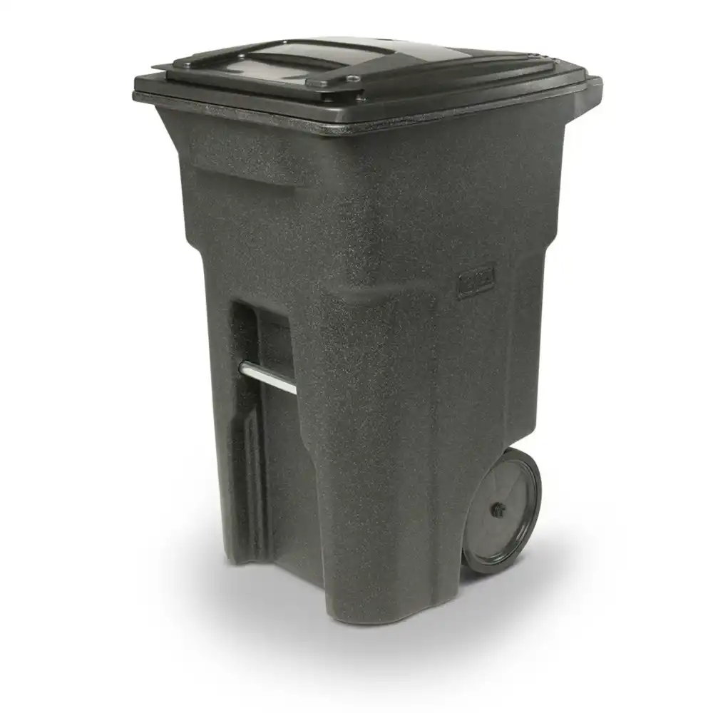 - Toter trash cans feature quiet-cap wheels to reduce noise when moving cans