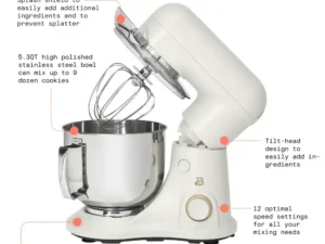 Beautiful 5.3QT Capacity Lightweight & Powerful Tilt-Head Stand Mixer, White Icing by Drew Barrymore