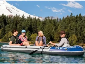 Intex 68324EP Excursion 4 Person Inflatable Rafting and Fishing Boat Set with 2 Oars, Pump, and Bag, Gray/Blue