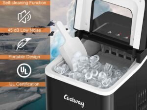 Costway Portable Ice Maker Machine Countertop 26Lbs/24H Self-cleaning w/ Scoop Black
