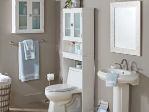 White Bathroom Space Saver with Cabinet and Open Shelf, Better Homes & Gardens Harborough