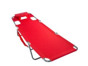 Ostrich Chaise Lounge Folding Portable Sunbathing Poolside Beach Chair, Red