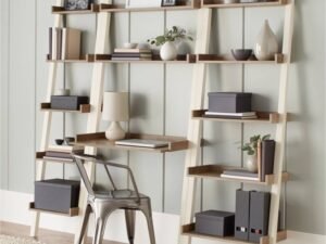 Better Homes & Gardens Bedford 5 Shelf Leaning Bookcase, Off-White