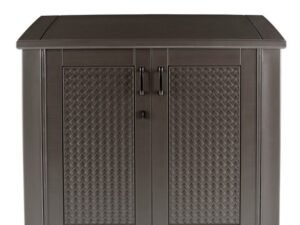 Rubbermaid Patio Chic Outdoor Storage Cabinet, Resin, Dark Teak, 123 Gallon