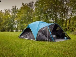 Coleman 8-Person Carlsbad Dark Room Dome Camping Tent with Screen Room, 2 Rooms, Blue