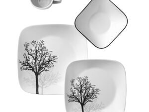 Corelle Square 16-Piece Dinnerware Set, Timber Shadows, Service for 4