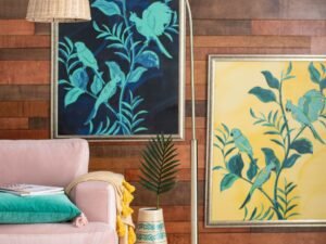 Antique Brass Arch Floor Lamp with Rattan Shade by Drew Barrymore Flower Home