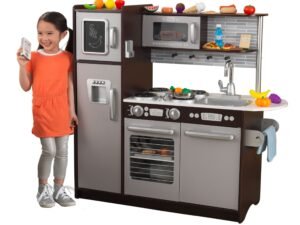 KidKraft Uptown Espresso Play Kitchen with 30 Piece Play Food Accessory Set
