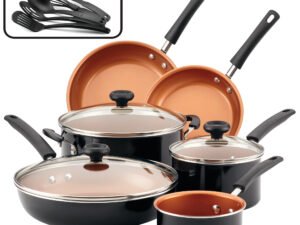 Farberware 14-Piece Easy Clean Pro Ceramic Nonstick Pots and Pans Set/Cookware Set, Black