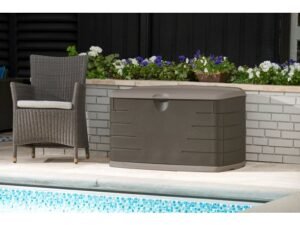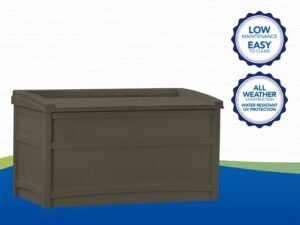 Suncast 50 gal Outdoor Resin Deck Storage Box with Seat, Java Brown